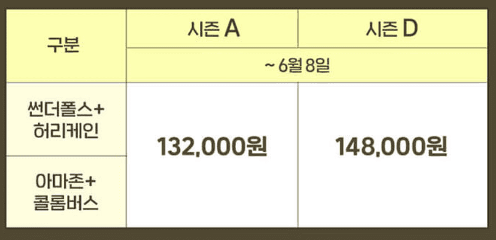 아래 소개될 할인들 역시 시즌별로 가격이 상이하니 방문하려는 요일에 해당하는 시즌이 어떤 종류인지 참고하시기 바랍니다.